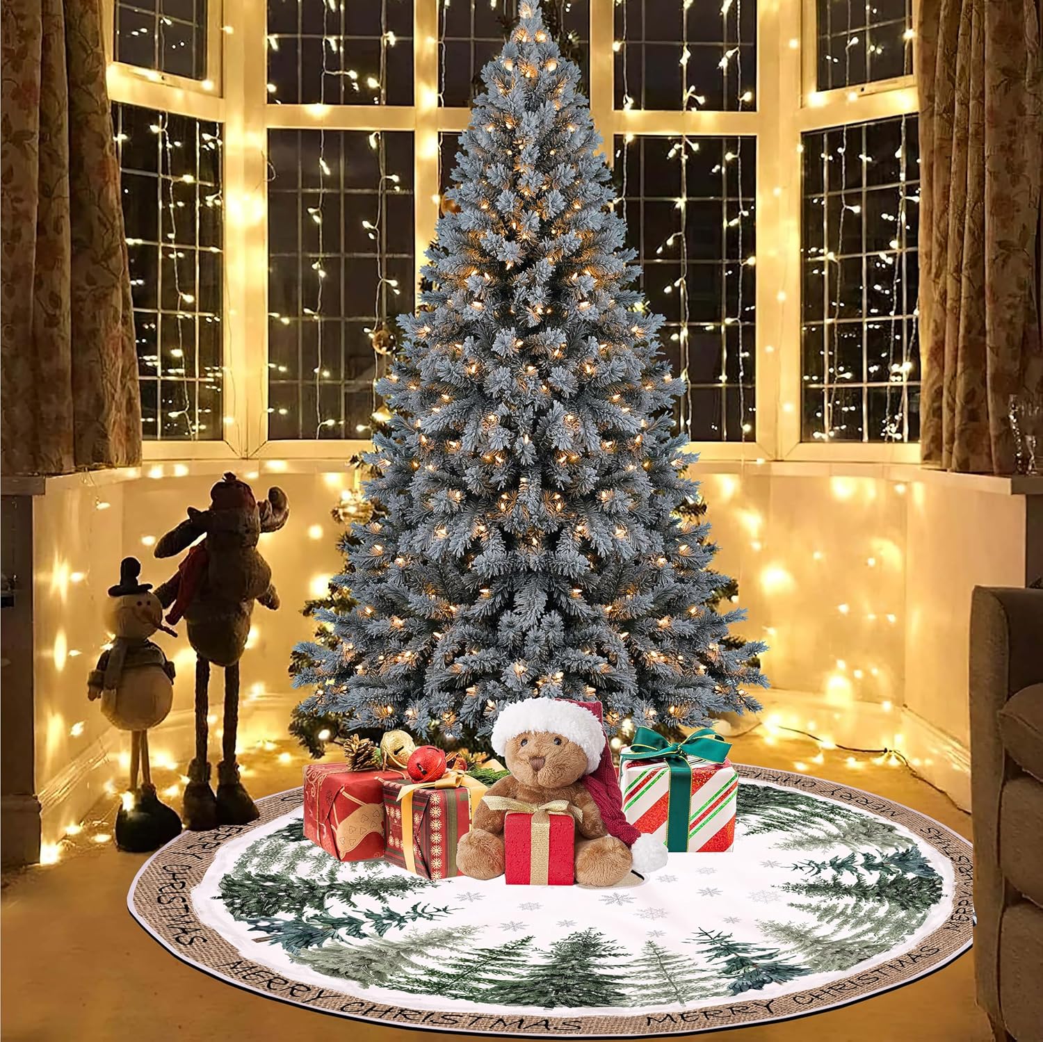 Baccessor Christmas Tree Skirt 48 Inch Pine Trees Snowy Forest Christmas Tree Skirt Collar for Farmhouse Vintage Rustic Merry Christmas Xmas Winter Holiday Party Decoration