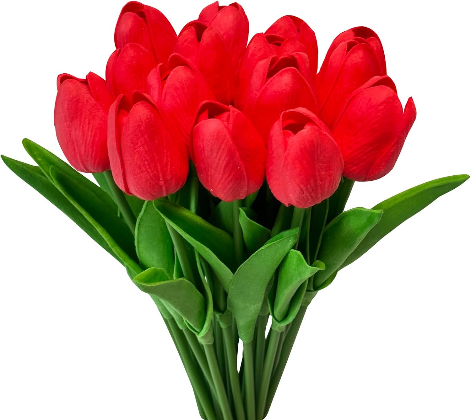 - MATERIAL: Our artificial tulips are made of plastic and polyurethane, which has a soft texture and a realistic touch. Inside the stem is durable wire that can be easily bent and cut to fit different vases as needed
