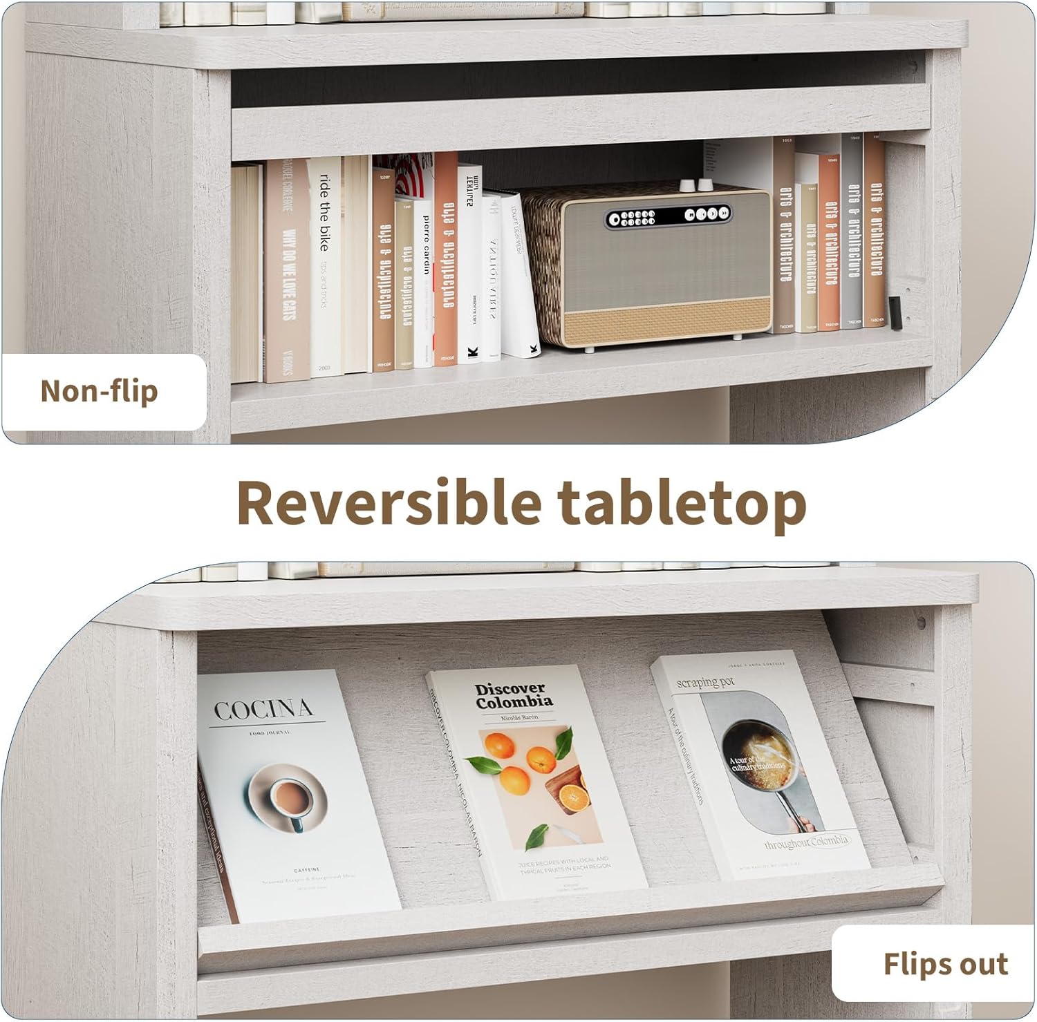 Rresyet 5 Tier Bookcase with Flip-Flop Design, 71" x 37" x 16" Wooden Book Shelf, Extra Bookshelf Storage Organizer, Display Standing Shelf Unit for Home Office, Living Room, Study Room (White)