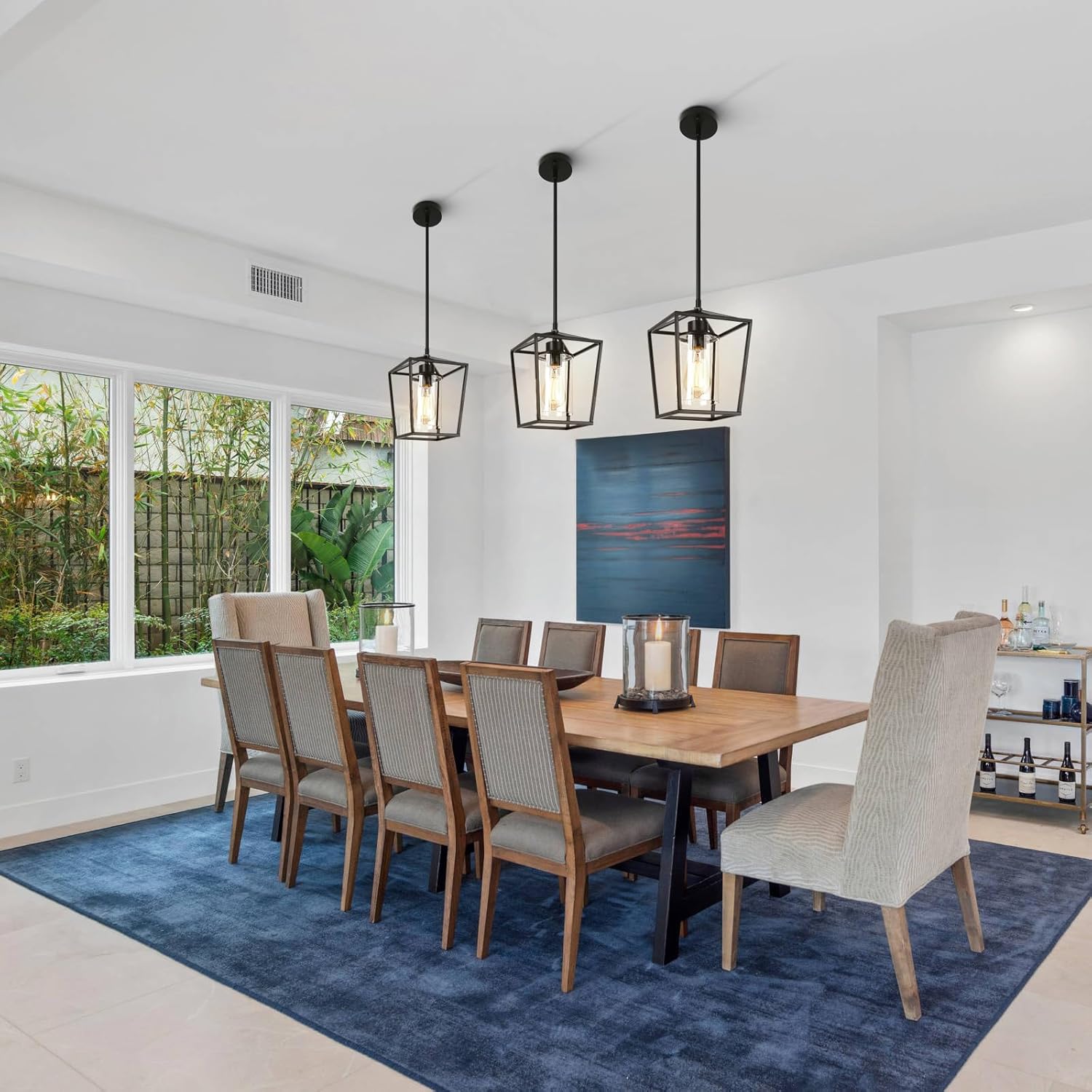 - 【Quick Installation】Open frame of this black cage hanging light makes it super easy to assemble the glass lampshade and replace the bulb. All accessories are included to set up this dinning room light fixtures, and you'll enjoy the ease of installing.