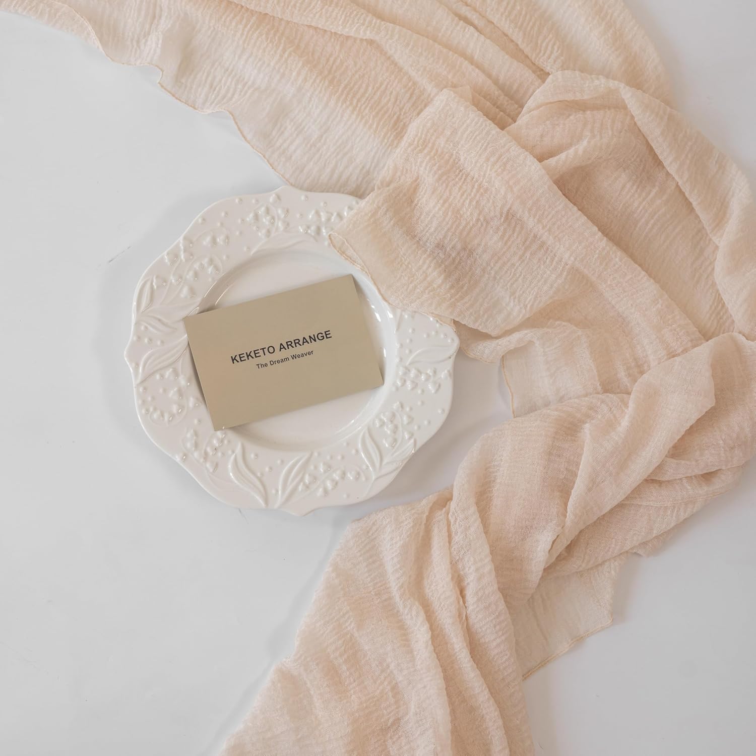 3Pcs Beige Gauze Rustic Cheesecloth Table Runner 120 Inch 10 FT for Wedding Baby Shower Bridal Shower Birthday Engagement Garden Outdoor Party Long Sheer Boho Decorations
