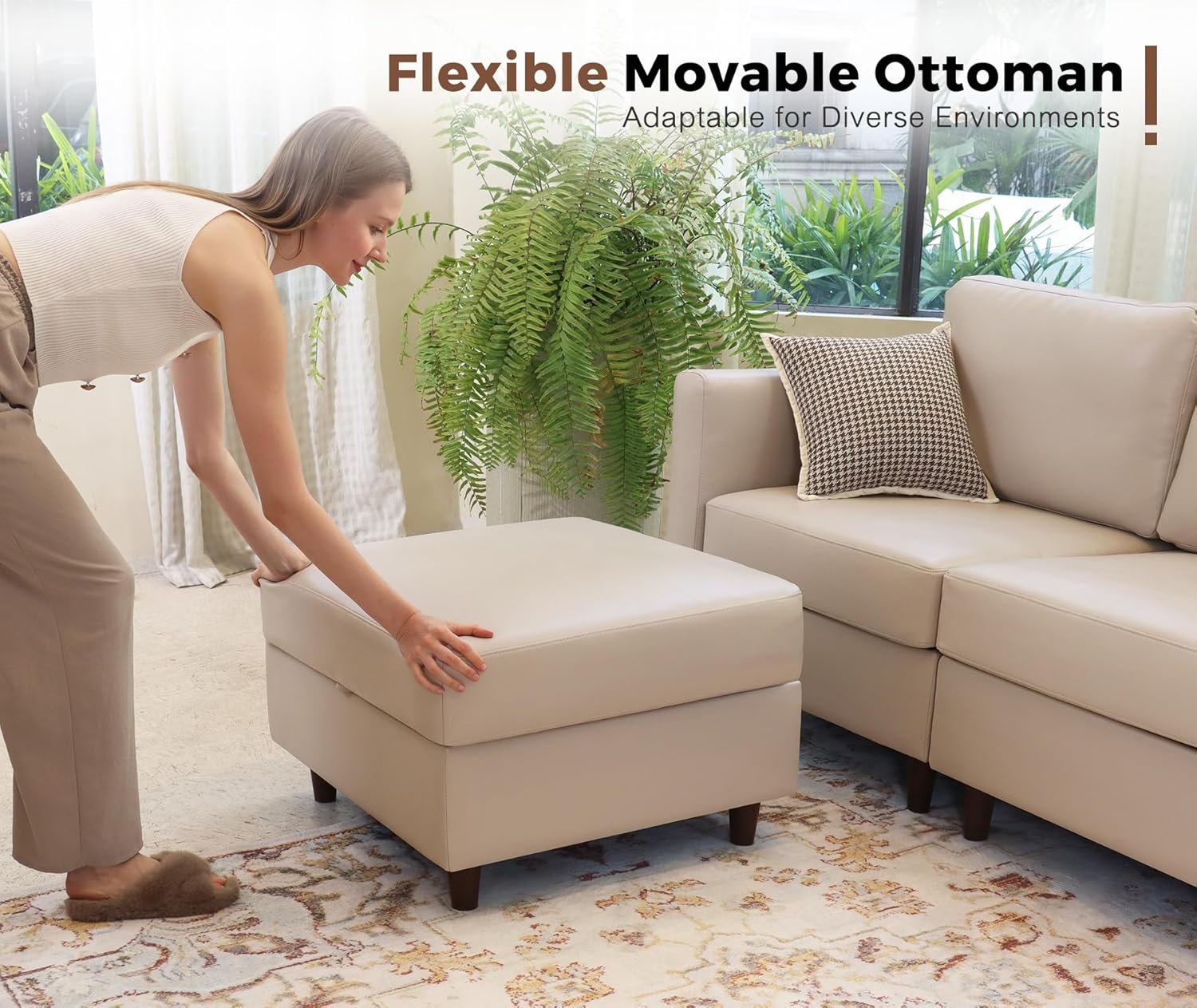 118.5" Faux Leather Modular Sectional Sofa, L Shaped Couch Set for Living Room, 6-Seater Comfy Cloud Couches with Movable Storage Ottoman Whitesand
