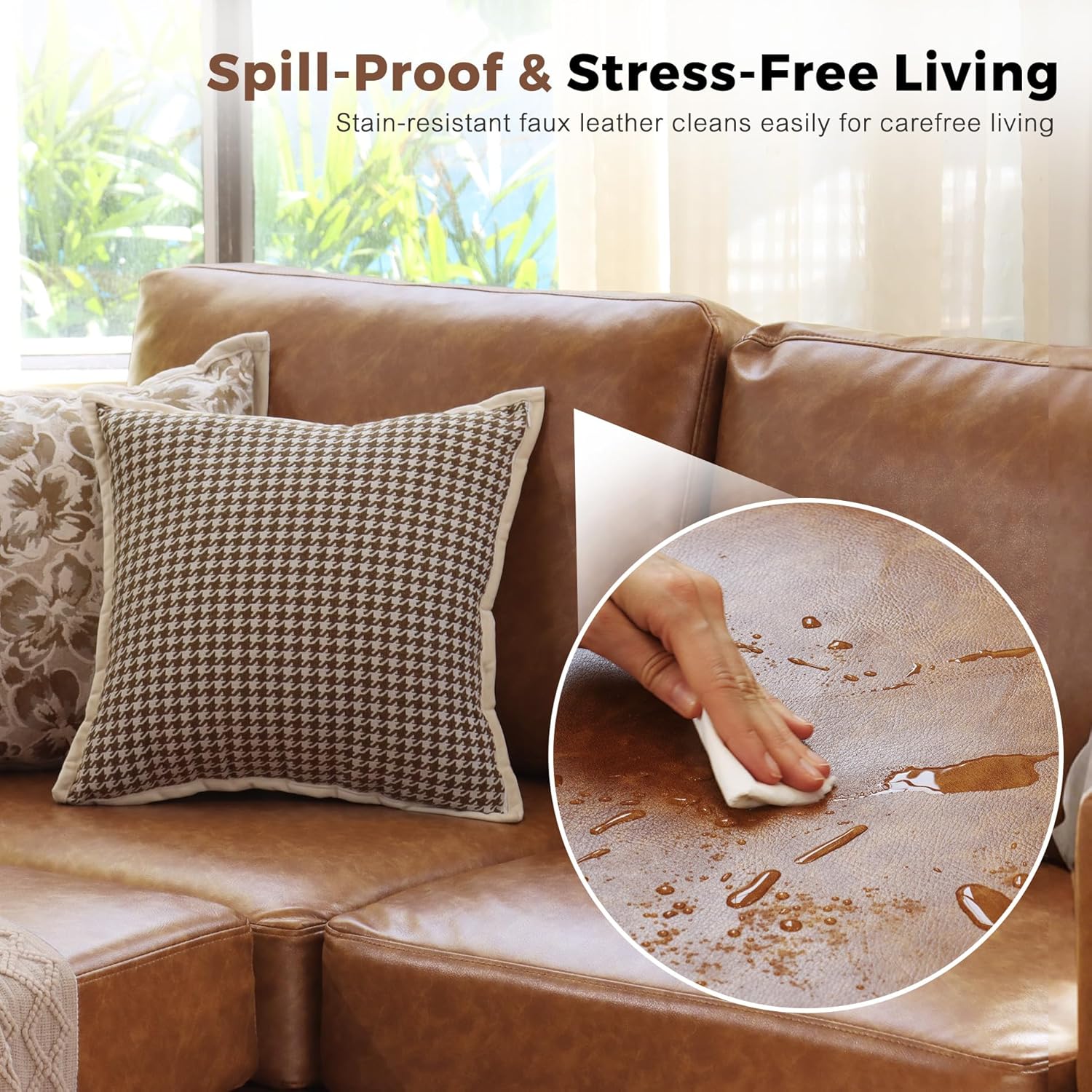 - 💡Effortless-Clean Faux Leather Sofa: Waterproof and stain-resistant faux leather stays spotless. Wipe spills clean in 10 seconds with a damp cloth. The scratch-resistant textured surface feels soft and smooth, maintaining a stylish look even with pets and kids.