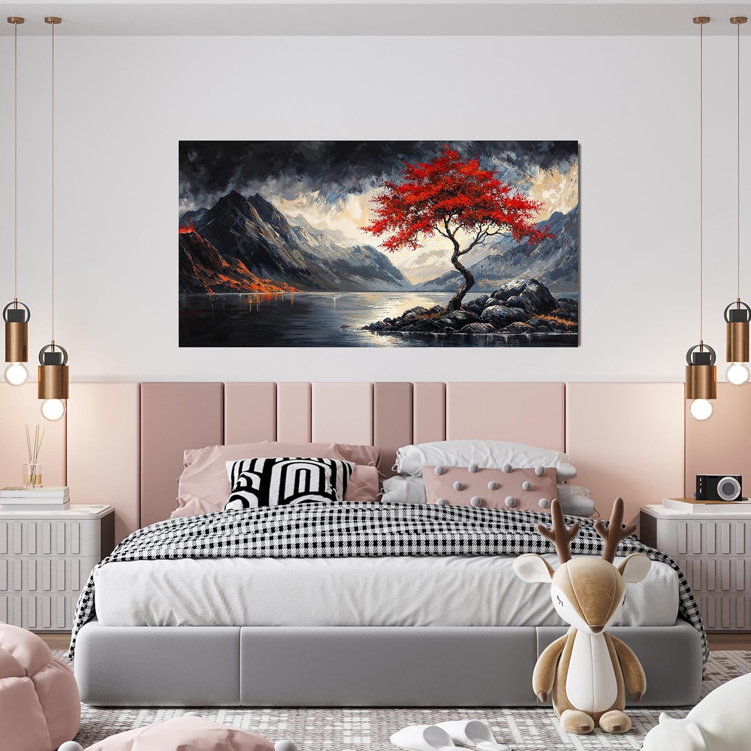Canvas Wall Art Decor Wall Art Decorations for Living Room Black and White Vintage Wall Art Nature Landscape Wall Art Prints Art Work for Wall Decor Red Artwork for Walls Home Office Decor 20" X 40"