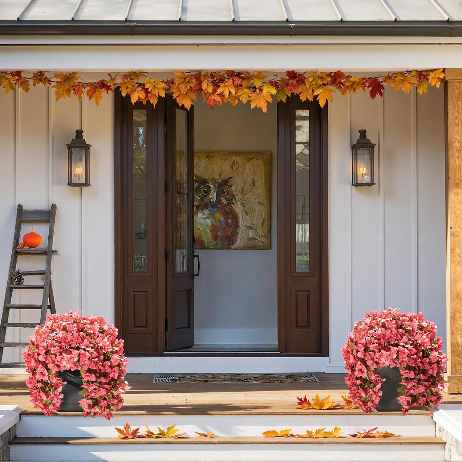 - ✅ Fall Flowers Artificial for Decoration: Beautiful artificial outdoor hanging flowers plants are suitable for home, garden, porch, patio, window box, urn, planter, pathway, entry, front door, flowerbed, indoor and outside decorations. Brings beauty to your home in the autumn.