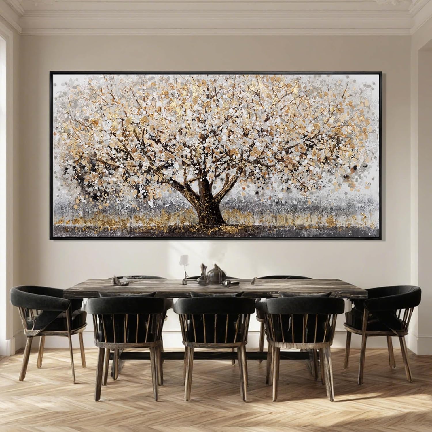 - Perfect wall decoration: Gold foil canvas wall art suitable for bedroom, living room, dining room, kitchen, hotel and other places, it is very high fit with the room, can be well integrated into the overall decoration style, and enhance the sense of refinement of the room.