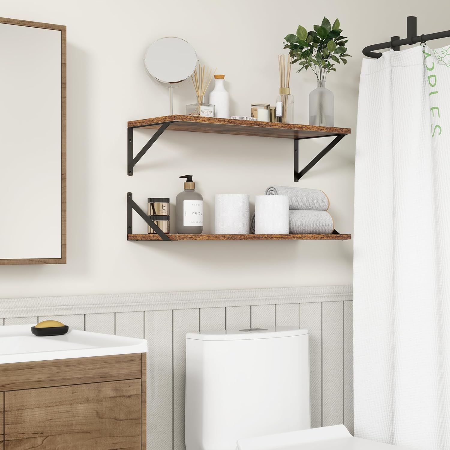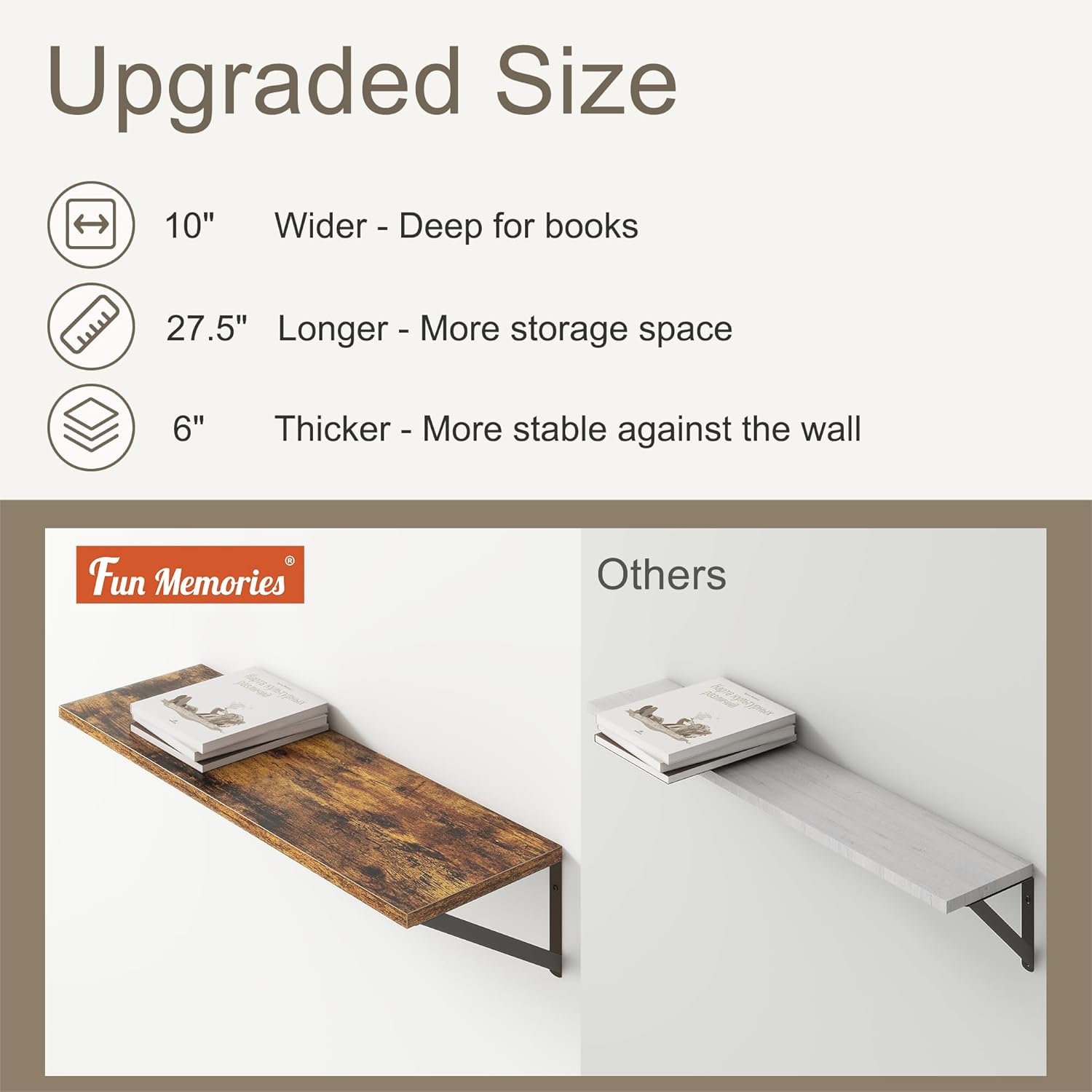 Fun Memories 27.5" W x10 D Floating Shelves, Large Wall Shelves 27.5 Inch Long, Set of 2, Farmhouse Wood Floating Shelf Wall Mounted, Deep Shelves for Bathroom, Living Room, Kitchen, Rustic Brown