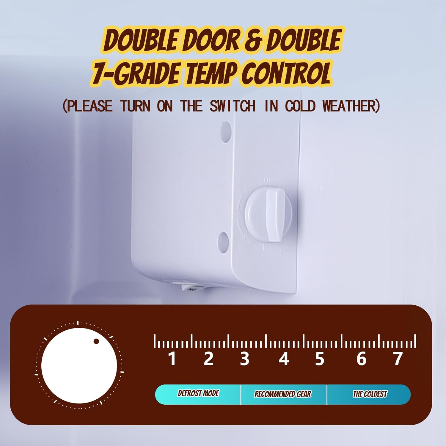 - Temperture Control: The small refrigerator has a traditional internal gear setting that you turn to change the temperature control range. We recommend that it can be set to 5. The higher the number, the lower the temperature. Equipped with R600a compressor, it is able to cool efficiently and quickly