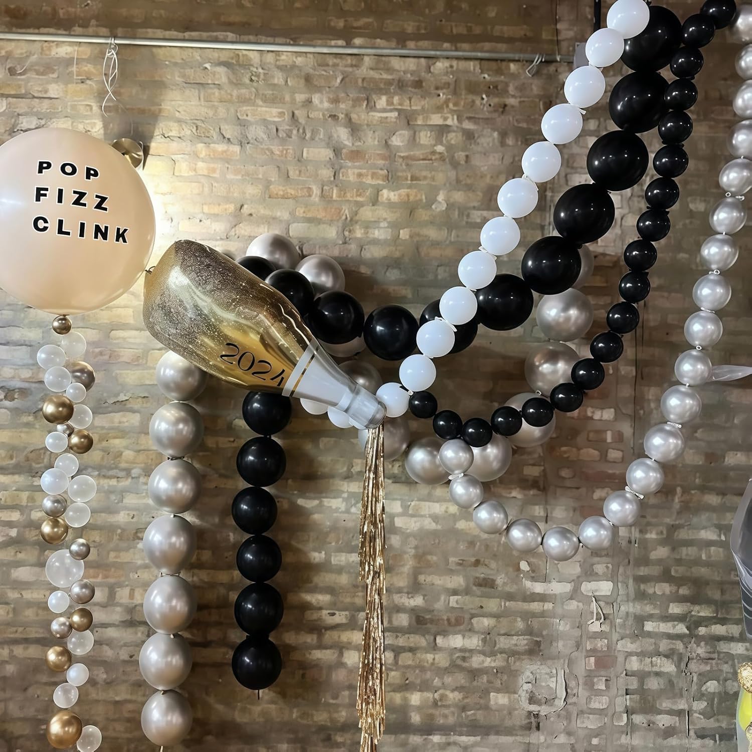 - Connecting Balloons Wide Use - The black and metallic silver tail balloons is suitable for various event scenarios. Whether it is for kids or aldult birthday party decor, baby shower, proposal, wedding, bridal shower, anniversary, graduation party decorations, concert, new year celebration decors, or commercial event decorations, it can play a key role, allowing you to easily DIY various favorite shapes and turn creativity into reality.