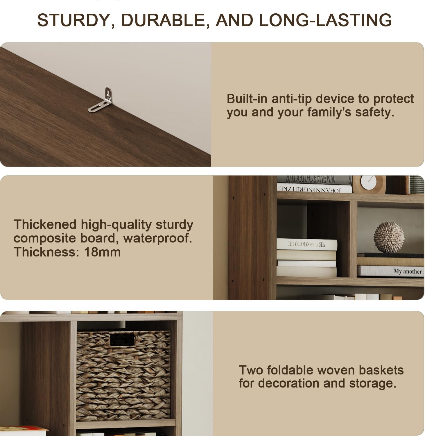 - Smart Storage Solution - The unique backless design with 16 irregularly arranged cubes (6 tiers total) offers versatile storage options, perfect for books, decor, and the included 2 premium foldable woven baskets that add both functionality and style.