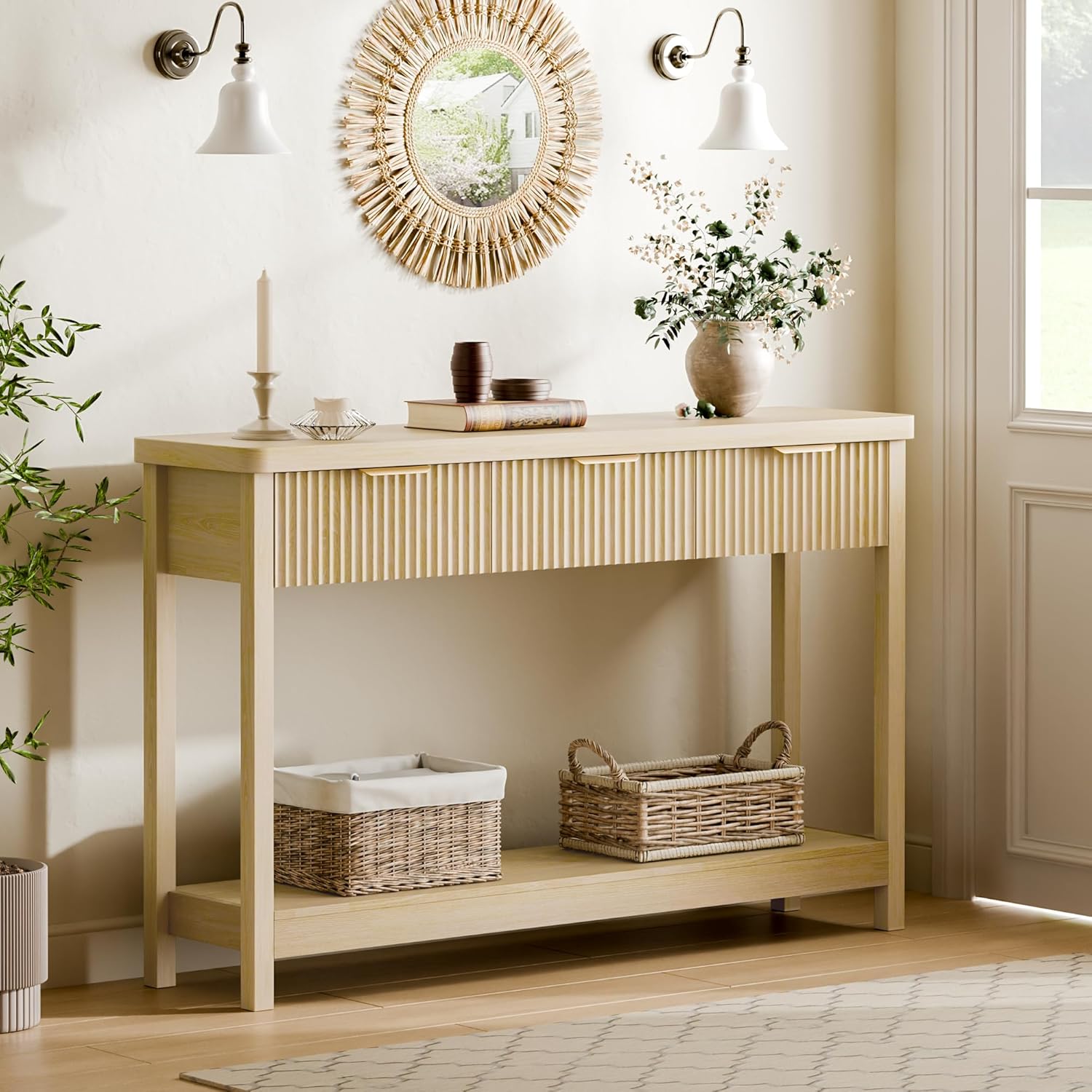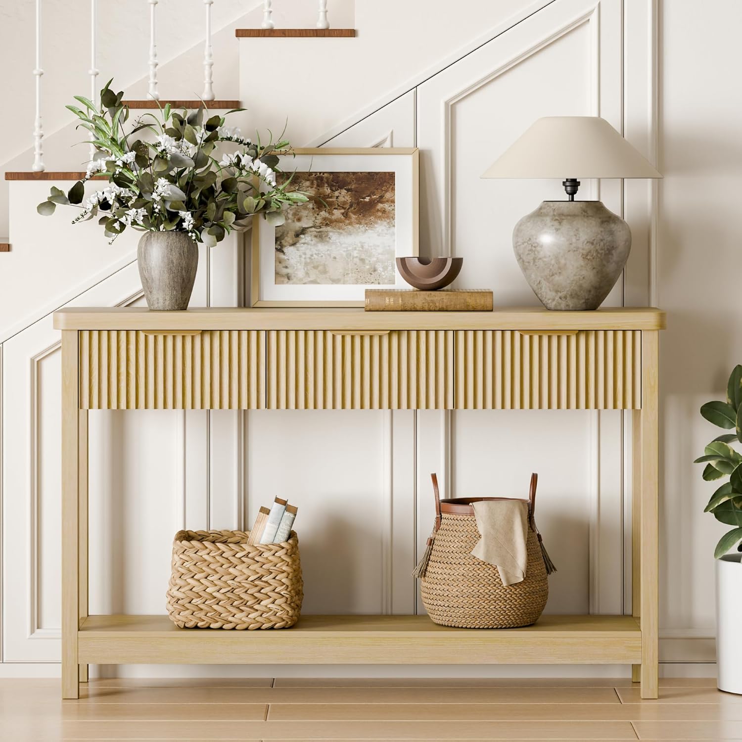 Lulive 51" Fluted Console Table for Entryway, Entryway Table with 3 Wooden Drawers, Farmhouse Behind Sofa Table for Living Room, Hallway, Couch, Foyer
