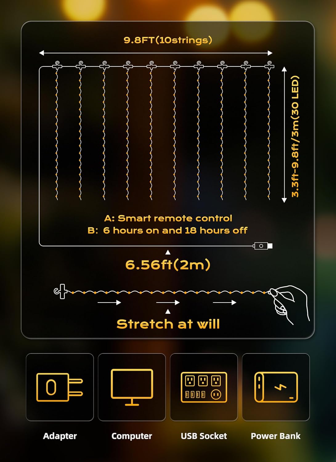 - [Safety & Decoration] Operated with 5V low voltage, our fairy curtain lights glow with low heating, and it is safe to touch; It can be safely hung on the curtains or on the wall. It is a wonderful decor for dorm, college, bedroom, party, birthday, wedding, Christmas, New Year, indoor, outdoor, classroom