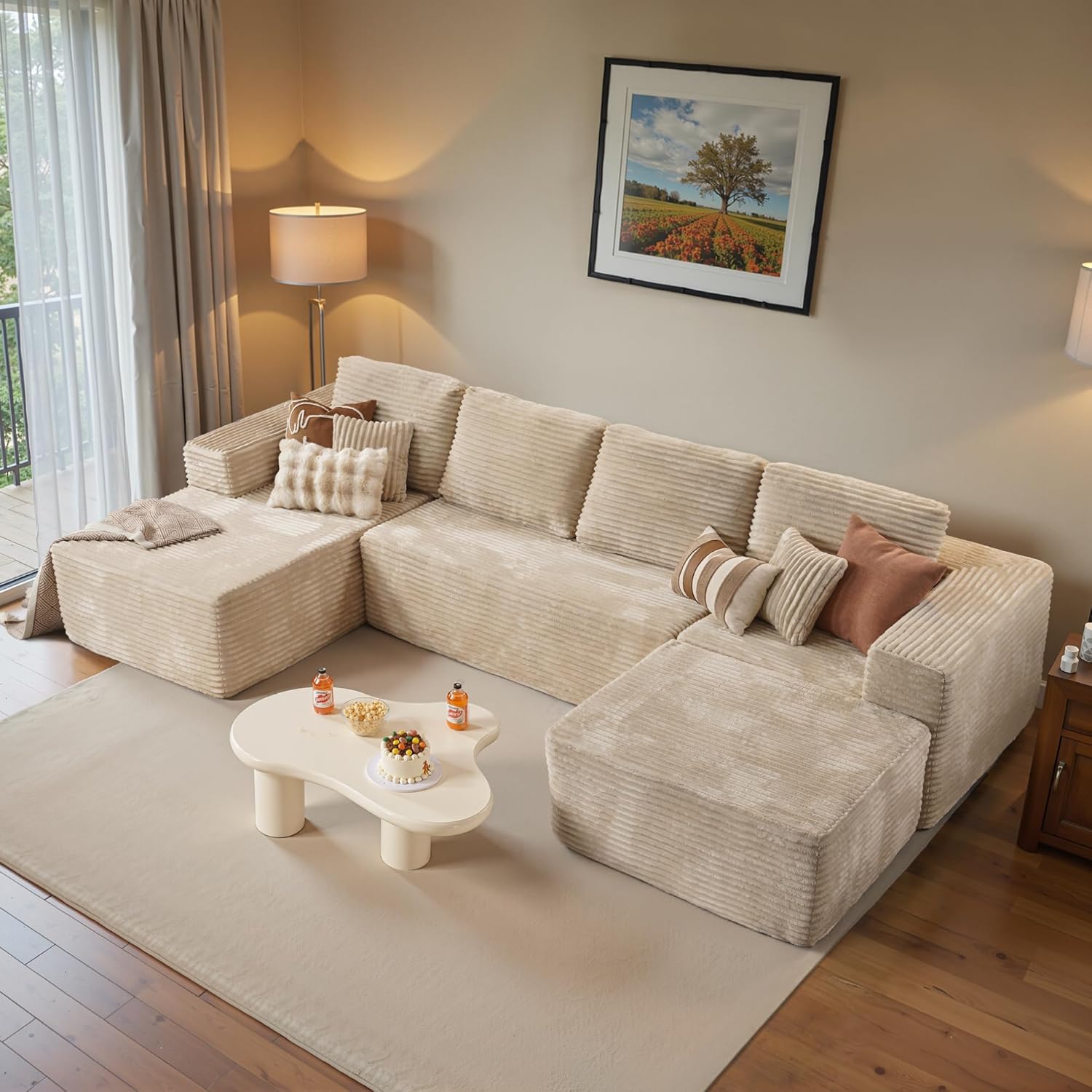 • Sophisticated Modern Design: Upgrade your living room with a plush corduroy sectional sofa. Its sleek, timeless design with clean lines and striped accents adds a sophisticated touch to any decor.