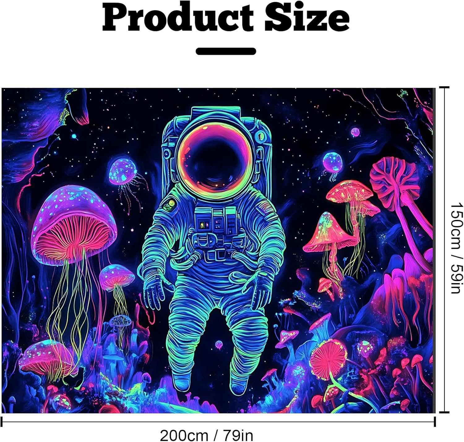 - Versatile Tapestry - With its durable materials and unique design, this blacklight tapestry can serve as a wall hanging tapestry, indie room tapestry, curtain tapestry, dorm room tapestry, ceiling tapestry, bedroom tapestry, glow-in-the-dark artwork or even a picnic blanket.