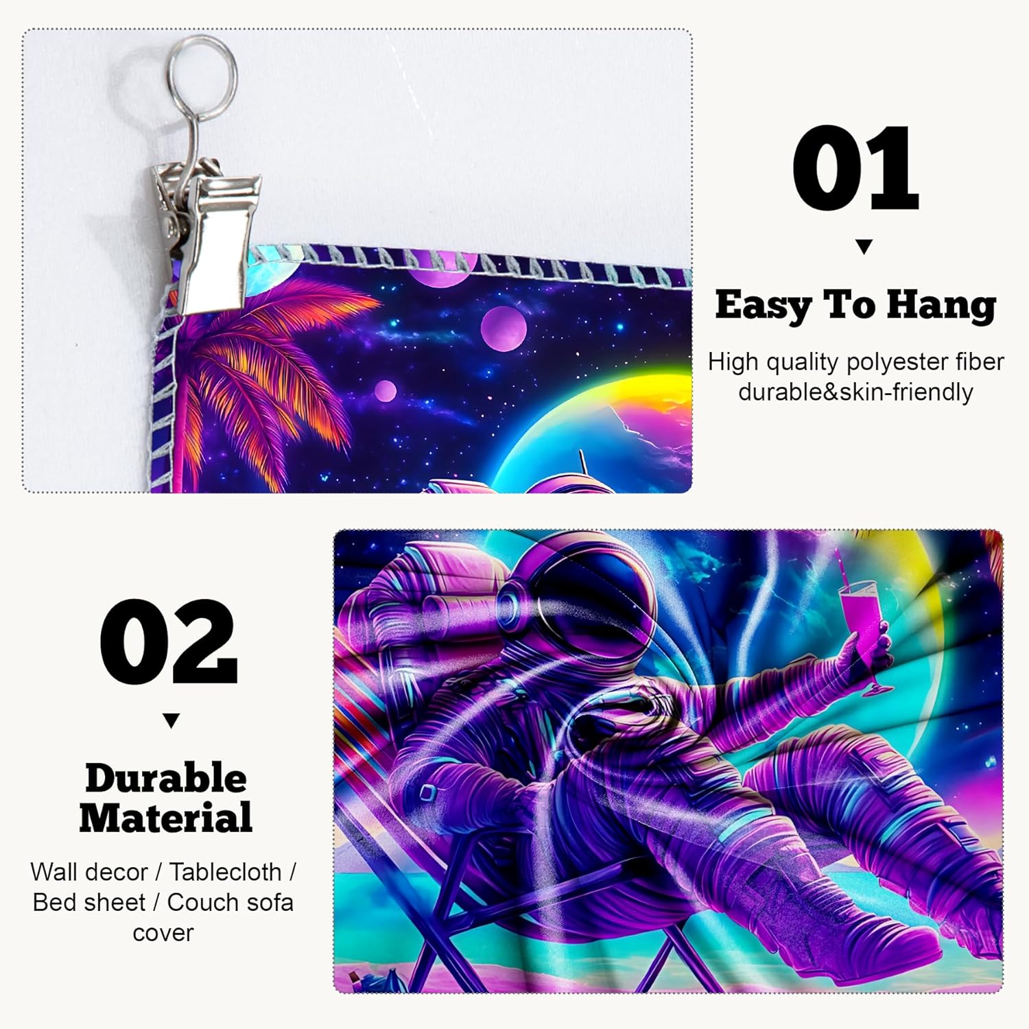 - Versatile Tapestry - With its durable materials and unique design, this blacklight tapestry can serve as a wall hanging tapestry, indie room tapestry, curtain tapestry, dorm room tapestry, ceiling tapestry, bedroom tapestry, glow-in-the-dark artwork or even a picnic blanket.