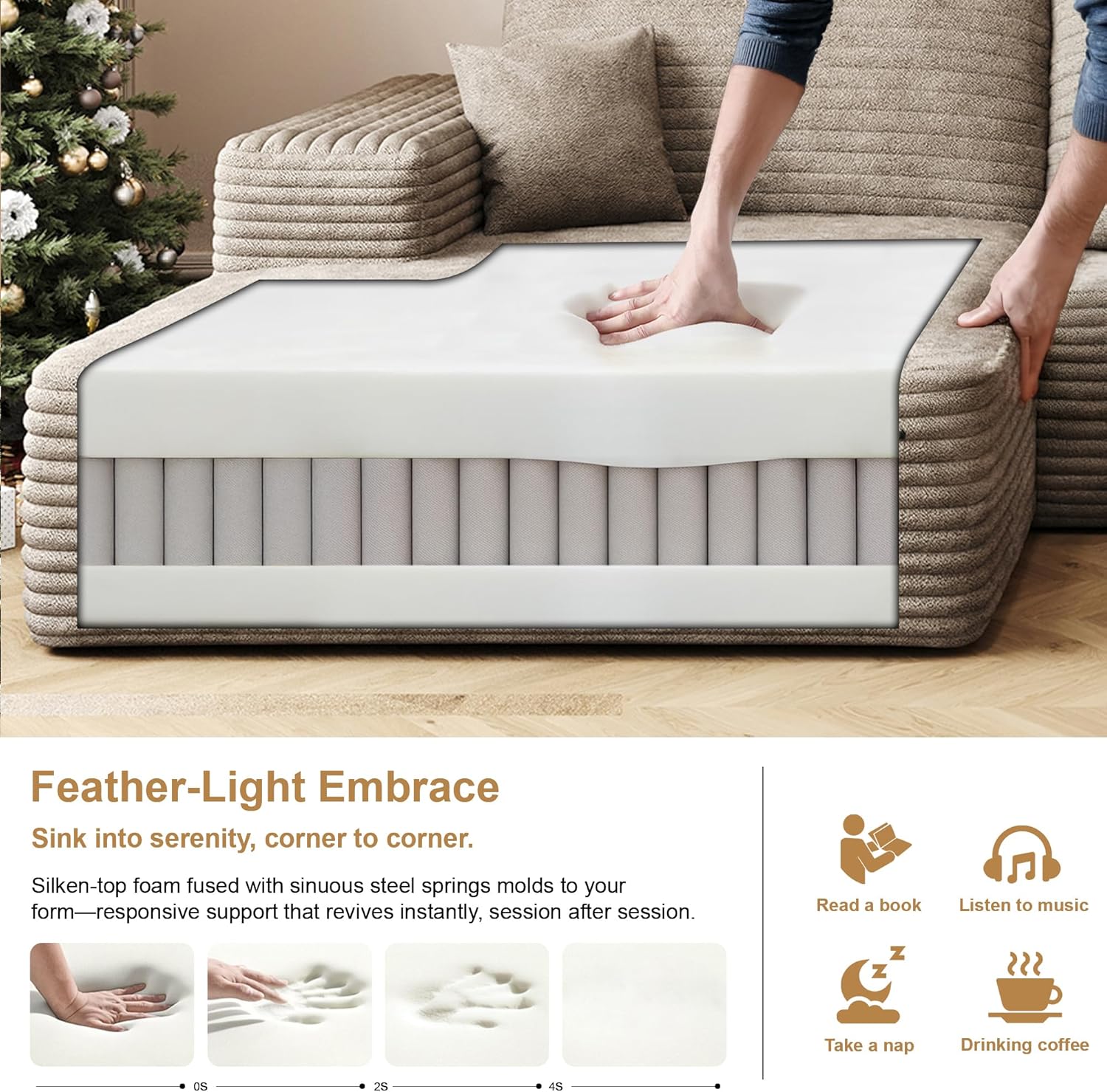 136" Sectional Couches for Living Room Modern Modular Sofa with L-Shape Couchs Upholstered Boneless Couch Deep Seat Sectional Couch with Chaise (Camel, Left Facing Chaise+3Seaters)