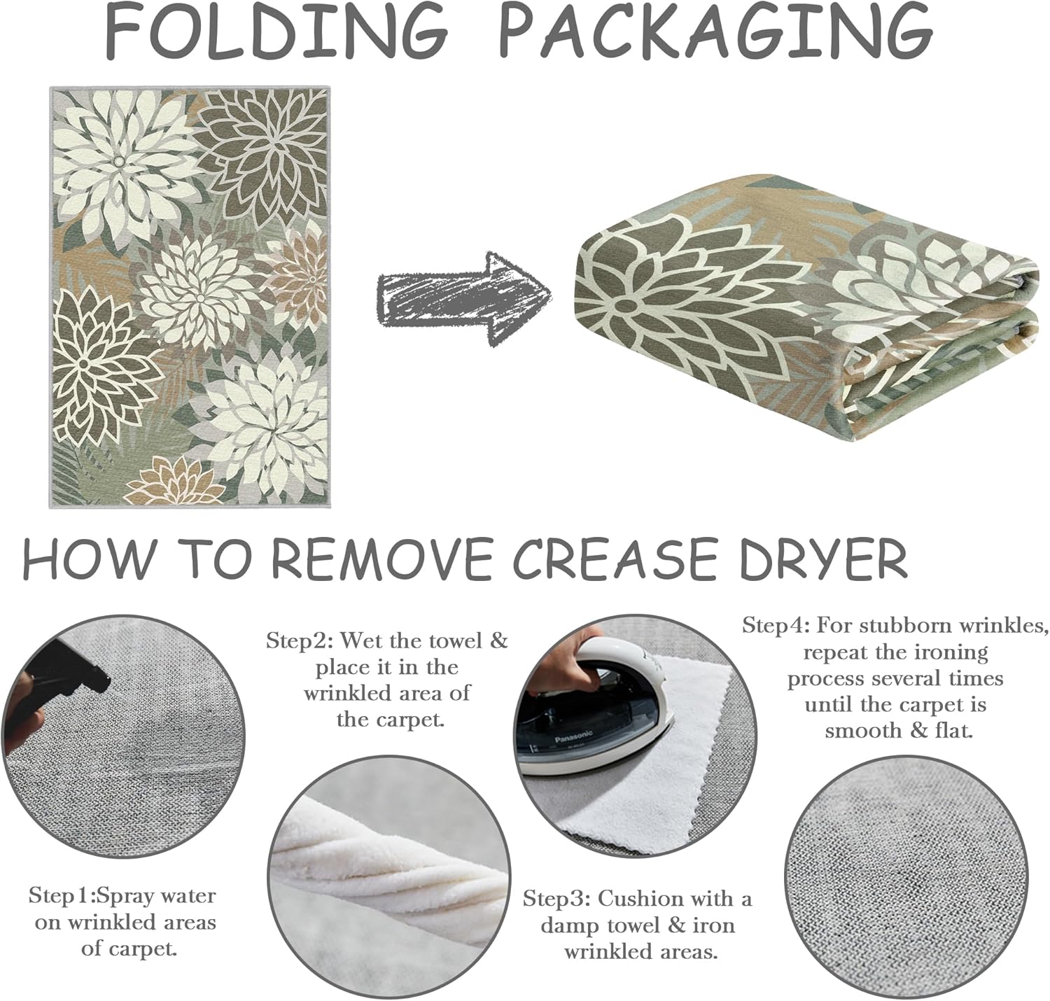 - High Quality Materials: Made from high quality, fade resistant materials, made from sturdy and soft materials, Foldable rug is built to last and provide comfortable support for your feet.