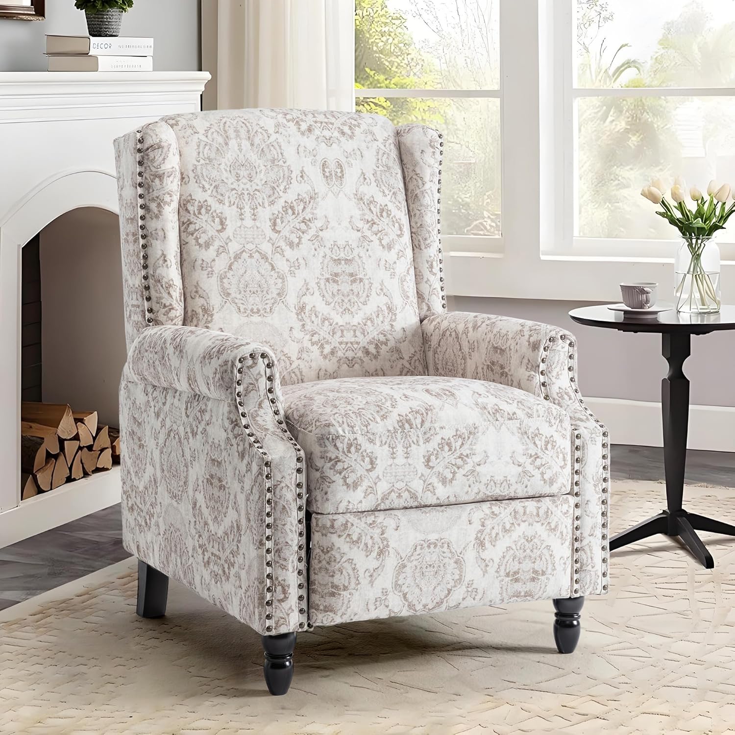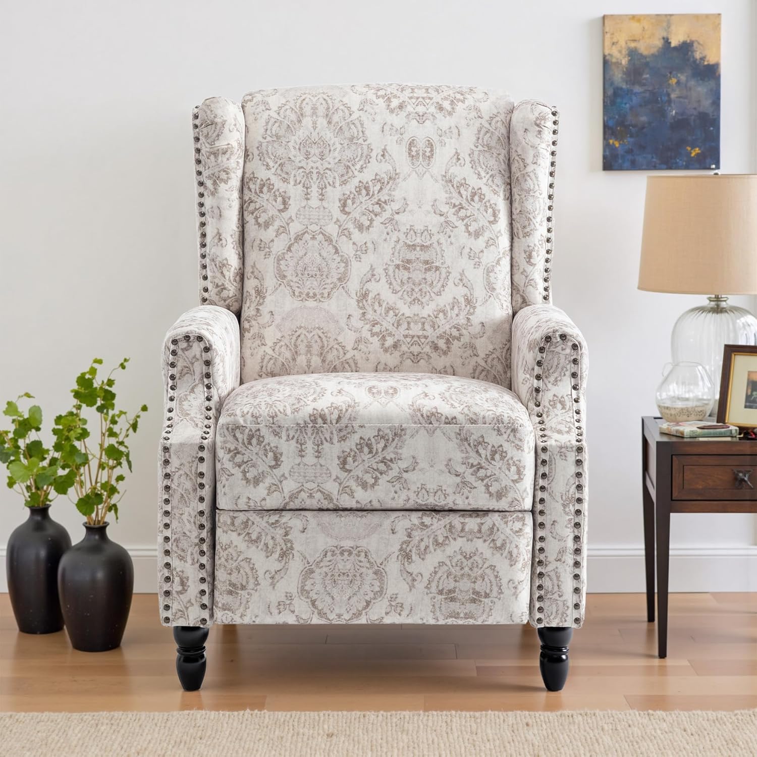 UIXE Recliner Chair, Fabric Upholstered Armchair Pushback Accent Chair for Living Room, Floral Rivet Trim Club Chair Home Theater Single Sofa Reading Seat - Beige Pattern