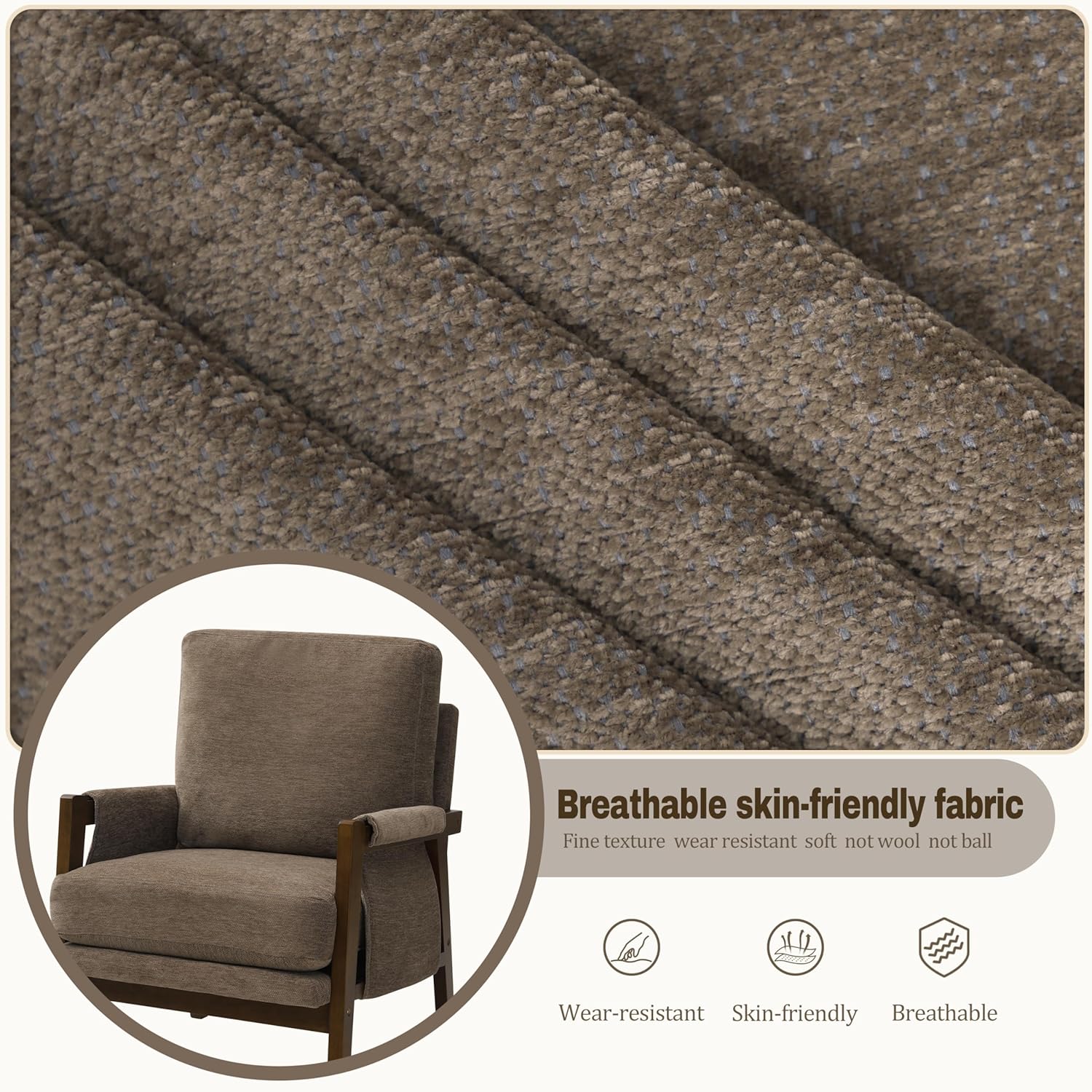 Modern Accent Chair for Living Room Mid Century Arm Chair Upholstered Bedroom Chair Comfy Lounge Chair with Solid Wood Frame, Dark Brown