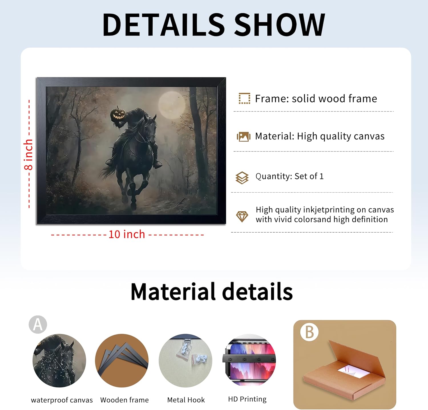 - Striking Halloween GothicWall Art:Features a haunting image of a headless knight holding a glowing pumpkin lantern, bringing spooky medieval legend and dark fantasy into your home. A perfect fit for Halloween lovers, dark academia fans, and gothic art collectors.