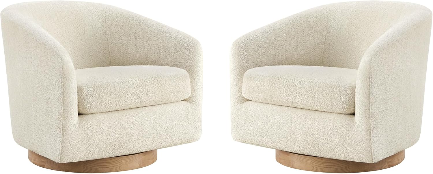 CHITA Swivel Accent Chair Set of 2, FSC Certified Upholstered Fabric Barrel Chair for Living Room, Fully Assembled, Cream