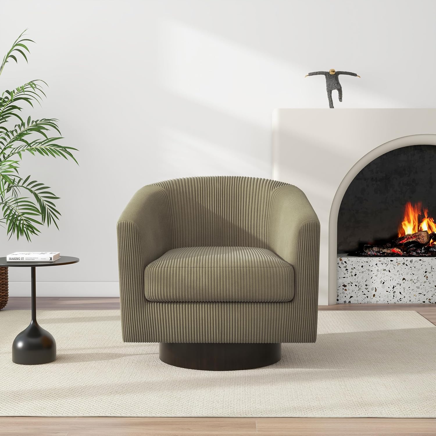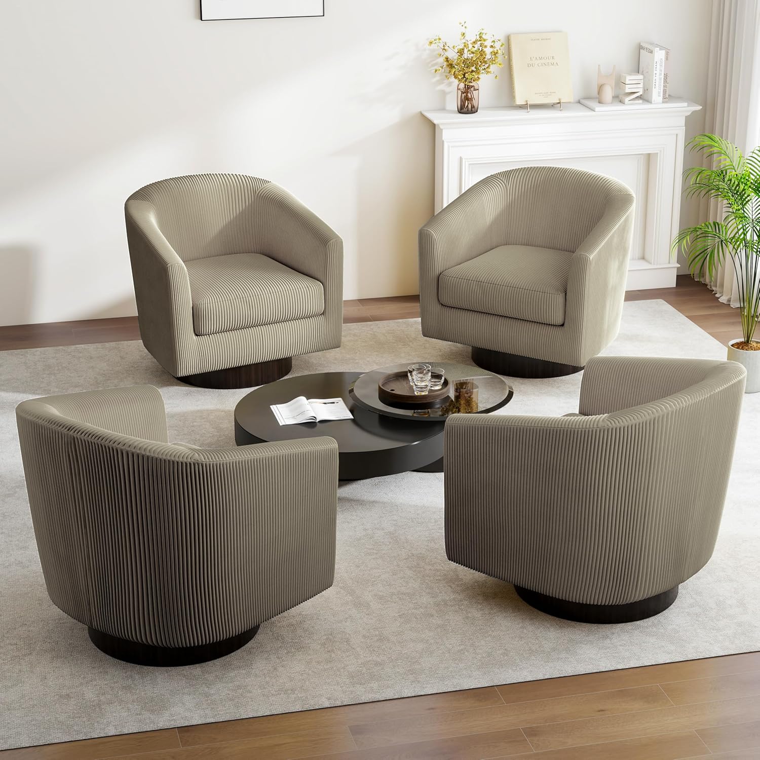 Swivel Barrel Accent Chair, Modern Round Corduroy Fabric Arm Chair for Living Room, Bedroom, Comfy Club Reading Chairs for Adults (Corduroy Camel, Set of 4)