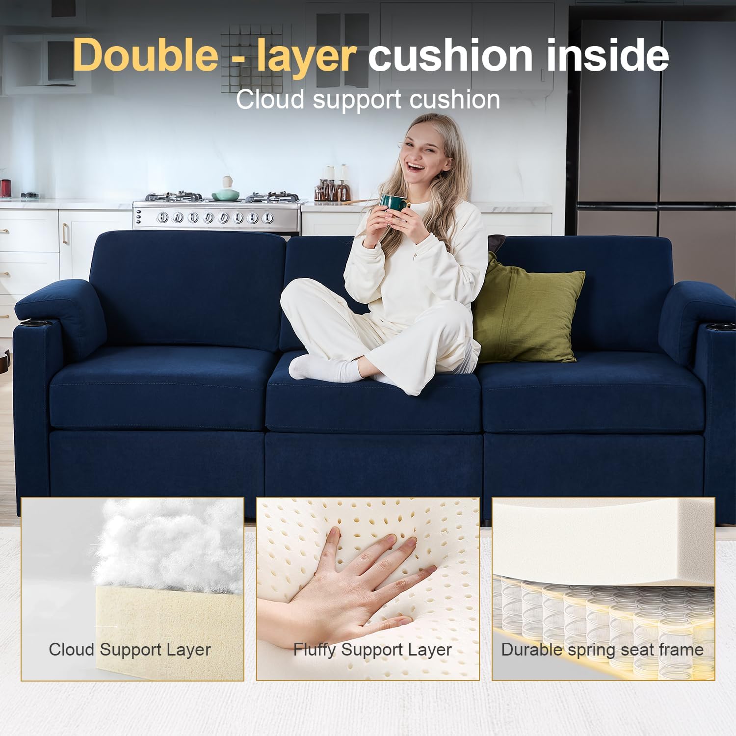 - Thoughtful Details: Our modular sofa each armrest is equipped with cup holder,soft armrest pad,and side pockets, adding more comfort and convenience to your daily life.