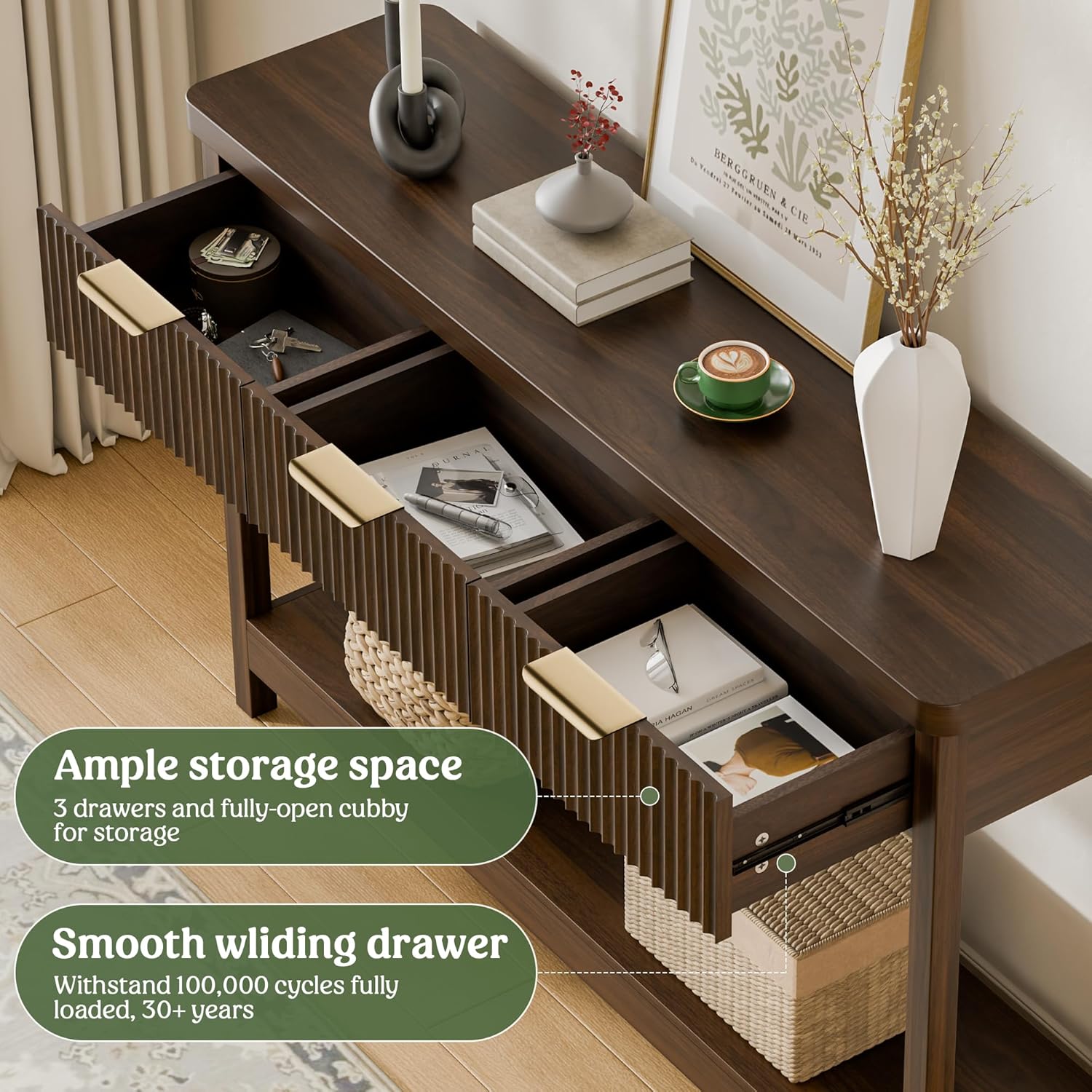 Lulive 51" Fluted Console Table for Entryway, Entryway Table with 3 Wooden Drawers, Farmhouse Behind Sofa Table for Living Room, Hallway, Couch, Foyer