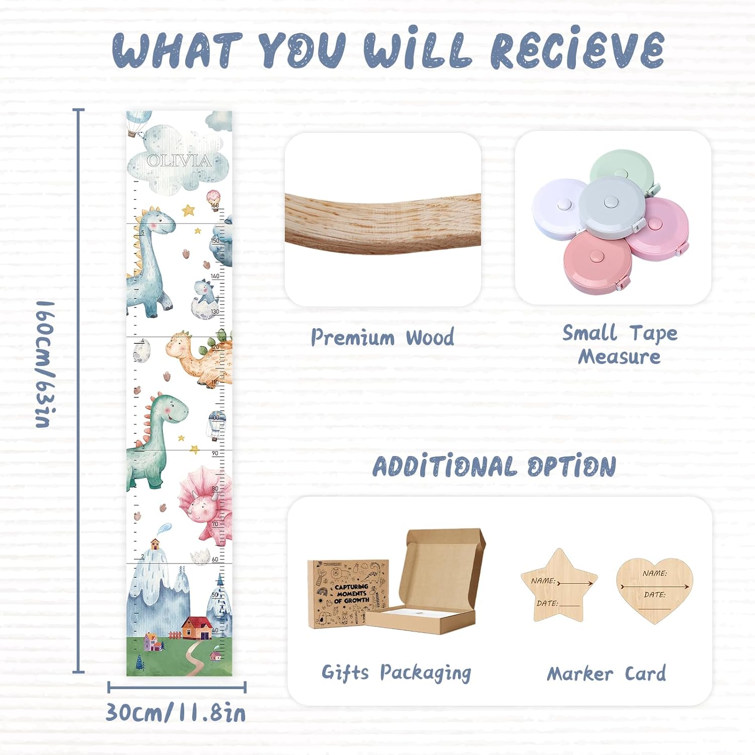 - Easy to Mark: The height measurement is engraved with clear and precise scales, you can customize different shapes of marker cards to record baby's height(with name and date), which is convenient for you to record your baby's growth moments at any time and witness every step of your baby's growth.