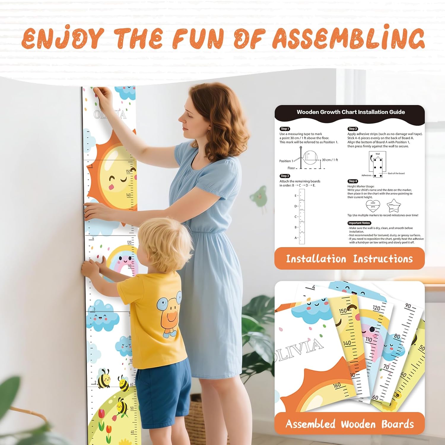 - Easy to Mark: The height measurement is engraved with clear and precise scales, you can customize different shapes of marker cards to record baby's height(with name and date), which is convenient for you to record your baby's growth moments at any time and witness every step of your baby's growth.