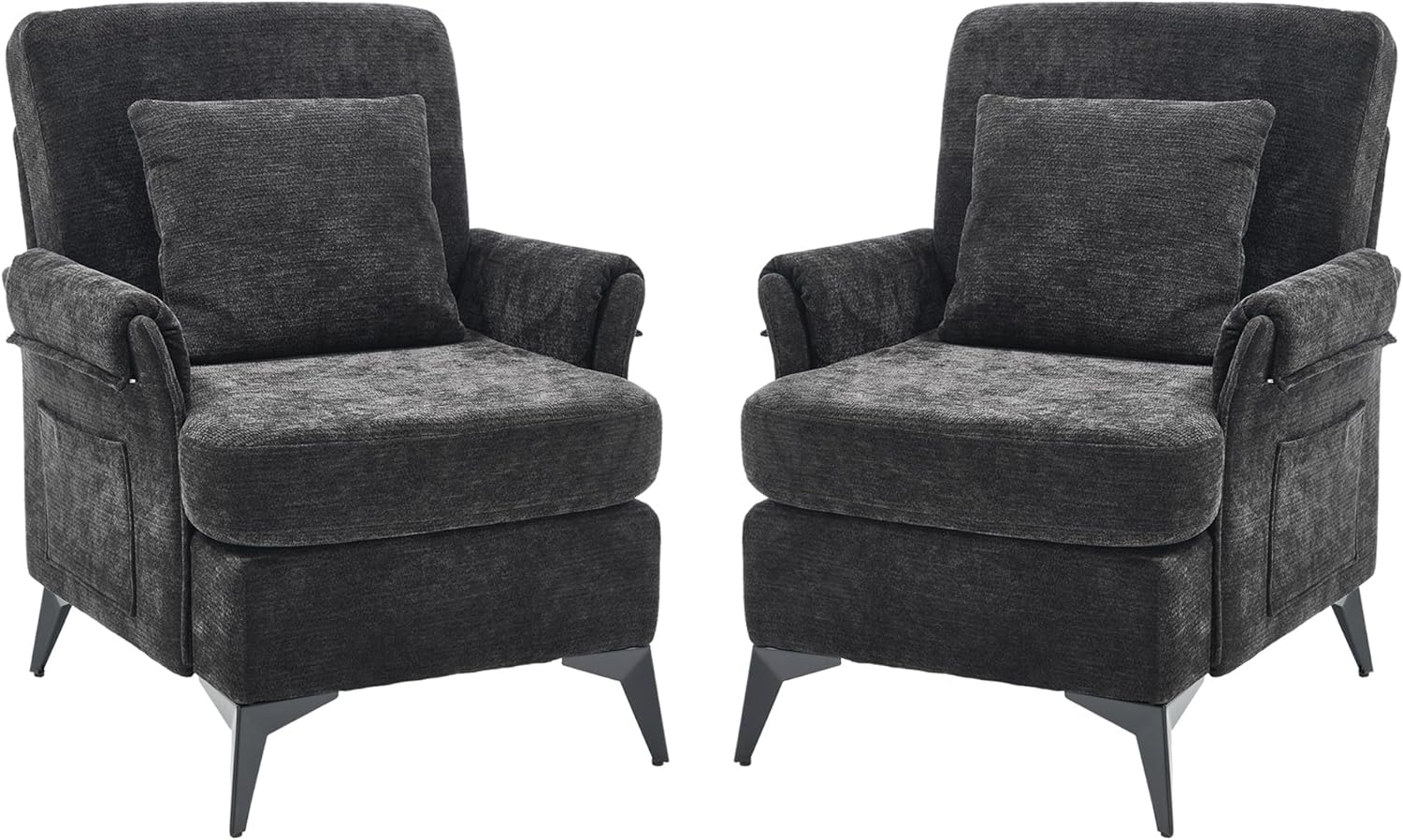 KCC Mid-Century Accent Chairs Set of 2,Chenille Modern Upholstered Single Sofa,Cozy Armchair with Back for Bedroom/Office/Cafe,Black