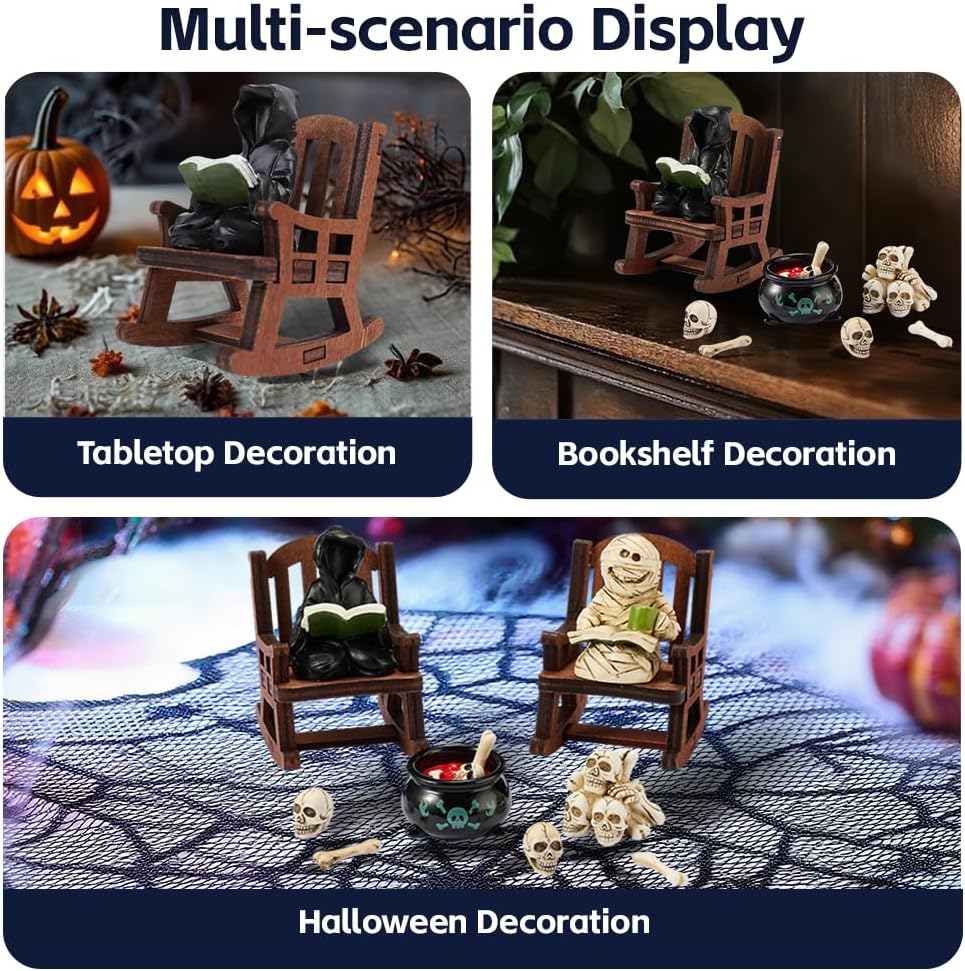 - Playfully Macabre Decor:Whimsical Halloween Figurine Mini Grim Reaper Reading Sculpture,On Your Desk, Bookshelf,Or Office Space—its Job is Bringing Quirky Charm While You Enjoy the Show.It Sneaks Unexpected Humor Into Your Dailygrind,Drawing Wry Smiles When You Least Expect it
