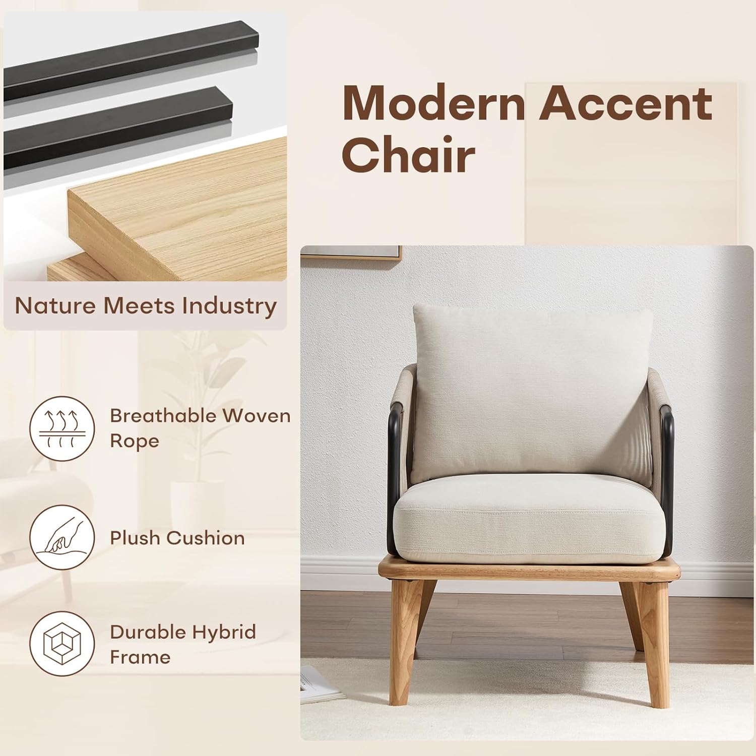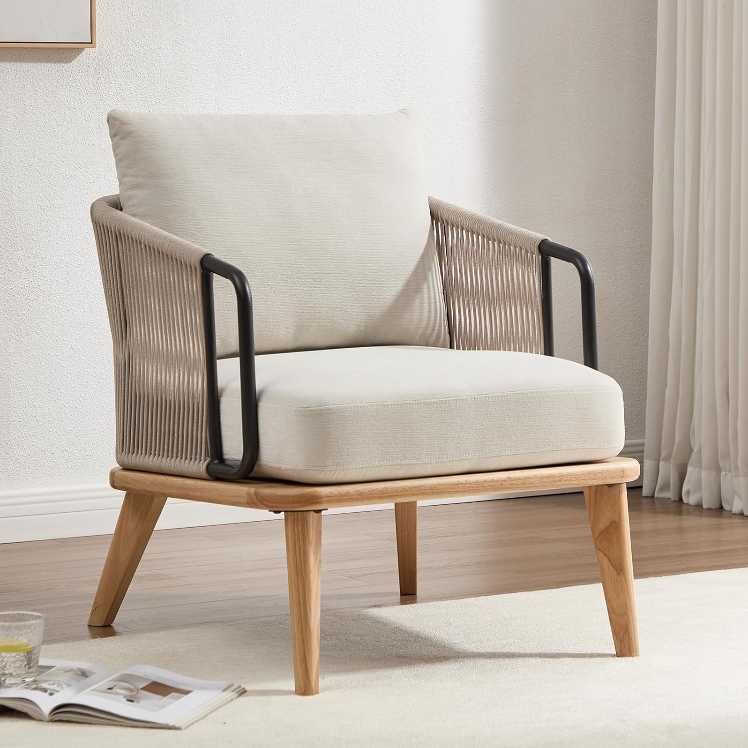 ANJ Accent Chair,Mid-Century Modern Reading Chair with Braid Armrests, Armchair for Living Room Bedroom Outdoor
