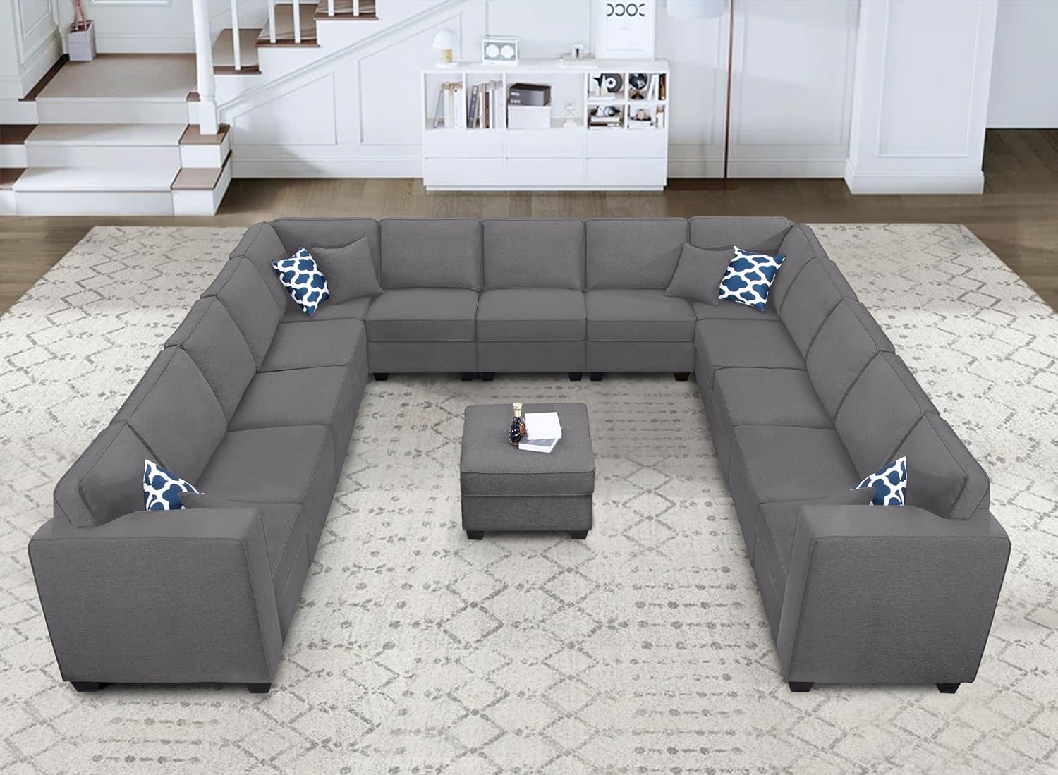 - 【Ergonomic Design】The backrest of the couches for living room perfectly fits the human body curve, the armrests are wide and at the right height, and the living room sofa as a whole is ergonomically designed to give you comfortable support. The modular sectional sofa is paired with multiple multi-functional small pillows, allowing you to relax anytime, anywhere. The oversized couch has a weight capacity of up to 660 pounds to give you stable support.