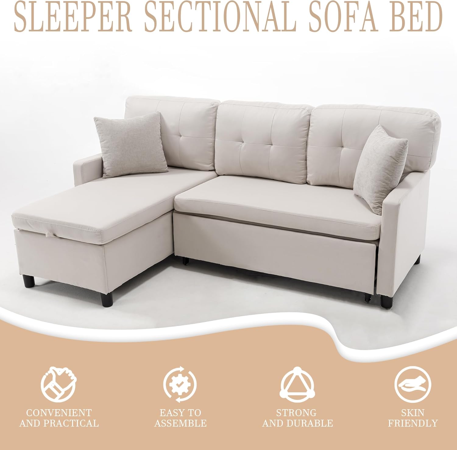 Pull Out Couch, Oversized Sleeper Sofa Couch, Sectional Sleeper Sofa Bed for Living Room Bedroom Lounge (Beige, 73 Inch)