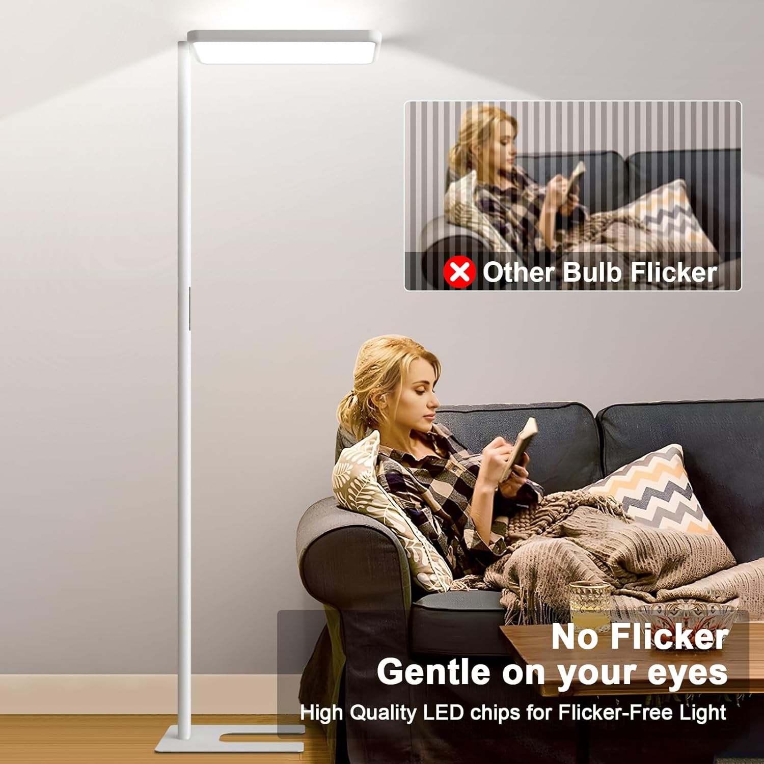 - EYE-CARE READING LAMP: Designed for eye-protection, this tall floor lamp offers glare-free, flicker-free lighting with CRI≥98 for true-to-life colors, no blue light hazard and UGR≤16, the 4000K natural daylight spectrum reduces eye strain, making it ideal as a reading floor lamp or study lamp