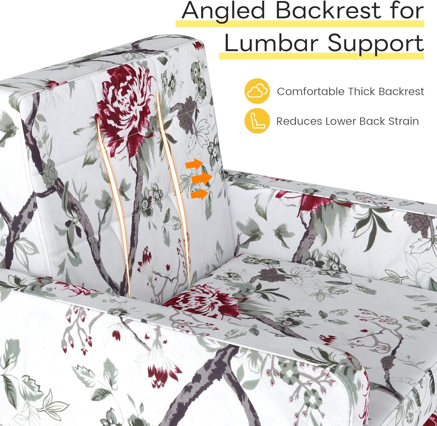 Kromax Mid-Century Modern Accent Chair for Living Room, 496 Lb. Weight Capacity, Dual Armrests, Comfy Extra Large Seat, Timeless Style Perfect for Reading & Relaxing, Red Floral